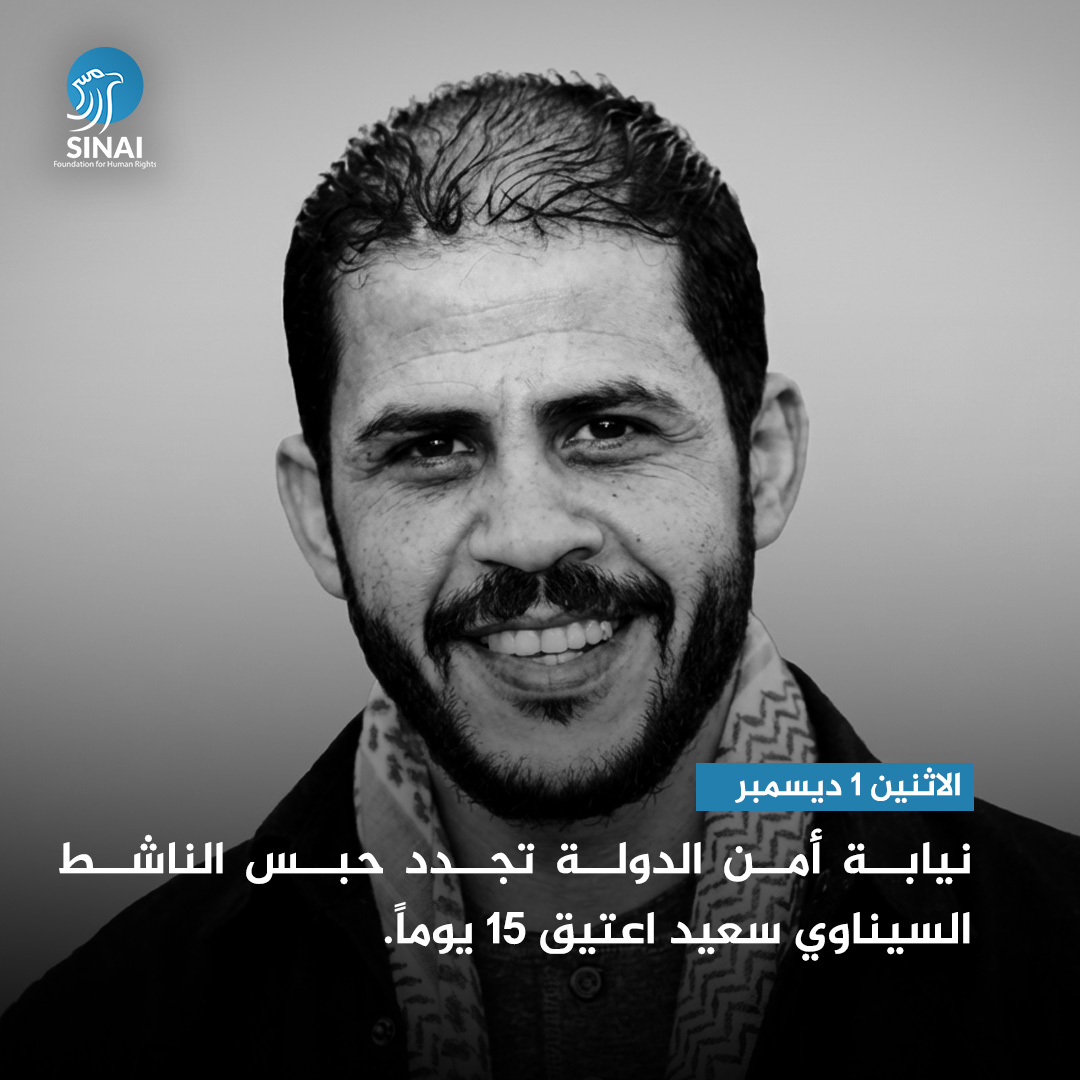 قررت نيابة أمن الدولة العليا اليوم الاثنين 1 ديسمبر 2025، تجديد حبس الناشط السيناوي "سعيد اعتيق حسان اعتيق" لمدة 15 يومًا.